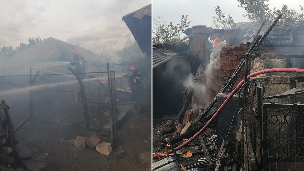 JUDEȚUL TULCEA. O casă a fost cuprinsă de flăcări: pompierii intervin de urgență. GALERIE FOTO