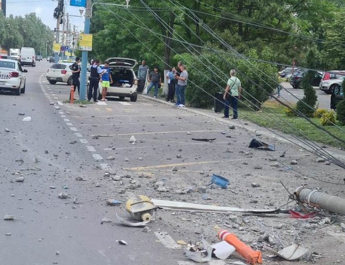 CONSTANŢA. Accident în această dimineaţă - un şofer a intrat cu maşina într-un stâlp. FOTO