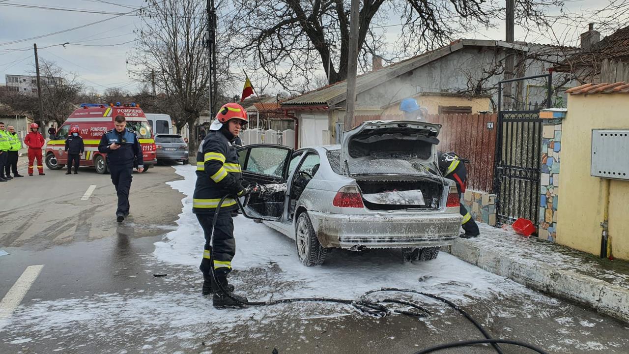 O mașină a fost cuprinsă de flăcări, în Medgidia
