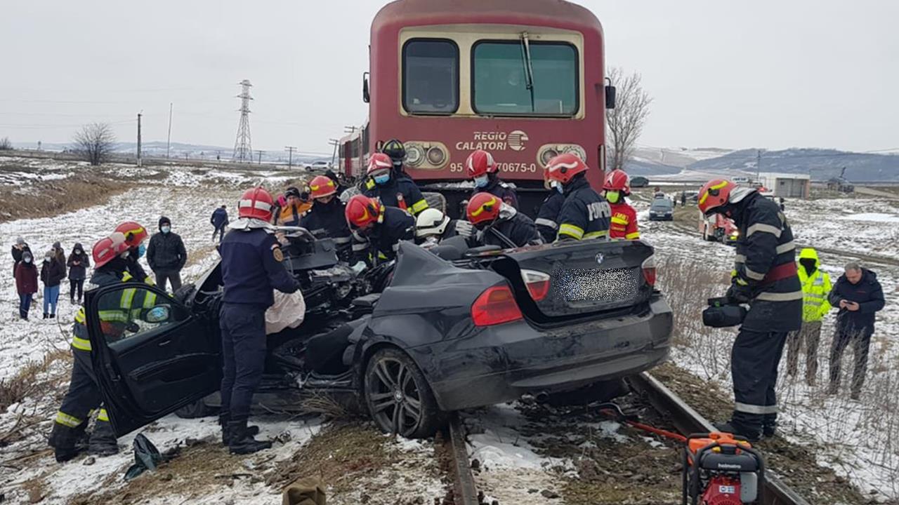 Doi tineri și-au pierdut viața după ce mașina în care se aflau a fost lovită de un tren. GALERIE FOTO/VIDEO