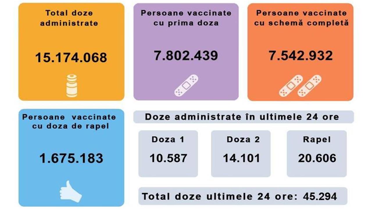CAMPANIA DE VACCINARE. Peste 45.000 de persoane au fost vaccinate în ultimele 24 de ore, din care 10.587 cu prima doză