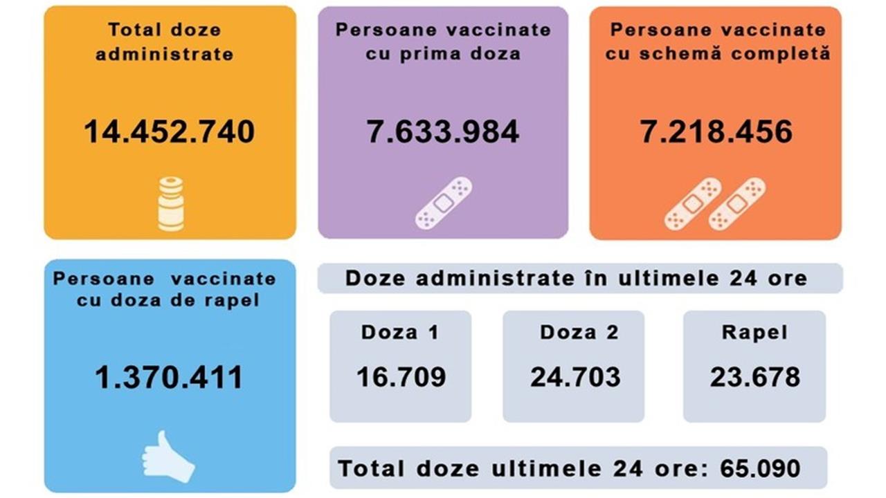 CAMPANIA DE VACCINARE. Peste 65.000 de persoane au fost vaccinate în ultimele 24 de ore, din care 16.709 cu prima doză