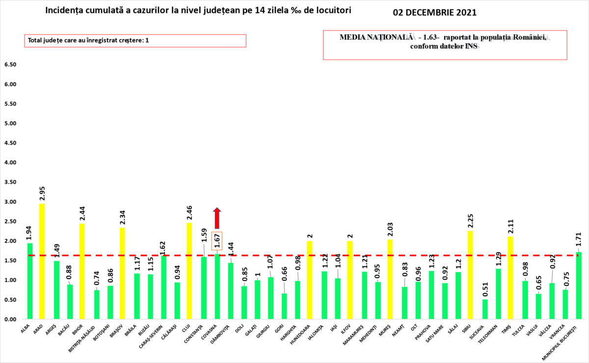 În intervalul 01.12.2021 (10:00) – 02.12.2021 (10:00) au fost raportate de către INSP 66 de decese (33 bărbați și 33 femei), din care 8 anterioare intervalului de referință, ale unor pacienți infectați cu noul coronavirus, internați în spitalele din Alba, Arad, Bacău, Bihor, Botoșani, Brăila, Brașov, Călărași, Caraș-Severin, Cluj, Dâmbovița, Dolj, Gorj, Maramureș, Mehedinți, Mureș, Neamț, Prahova, Sălaj, Sibiu și Timiș.