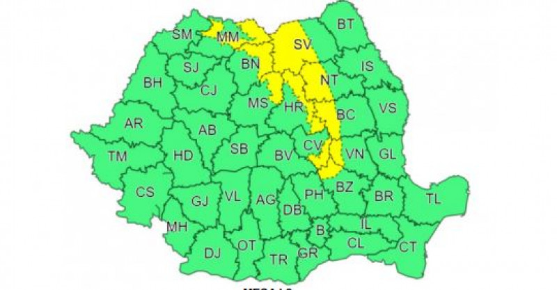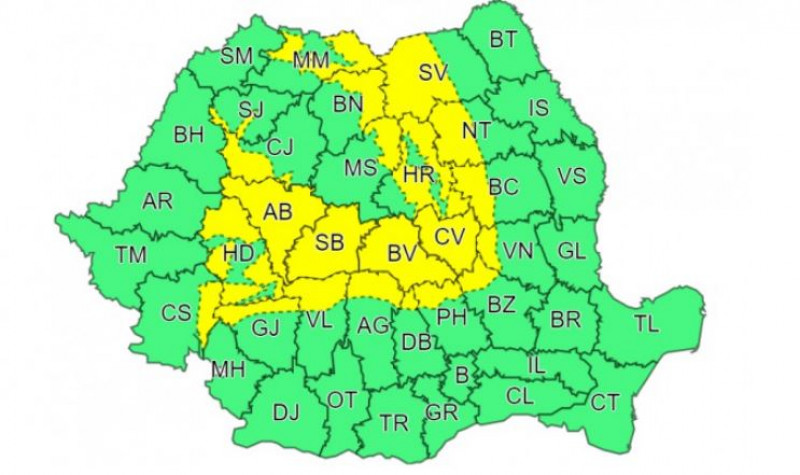 Luni dimineață intră în vigoare un alt Cod galben și durează până marți la ora 10.00. La munte vântul va avea intensificări, cu viteze de 70...80 km/h, iar în zona înaltă (la peste 1700 m), rafalele vor depăși 90…120 km/h și temporar va ninge viscolit. Local în Transilvania, temporar vor fi intensificări, cu viteze în general de 55...65 km/h. Intensificări ale vântului, cu viteze de 45...55 km/h, se vor semnala local și în restul teritoriului.