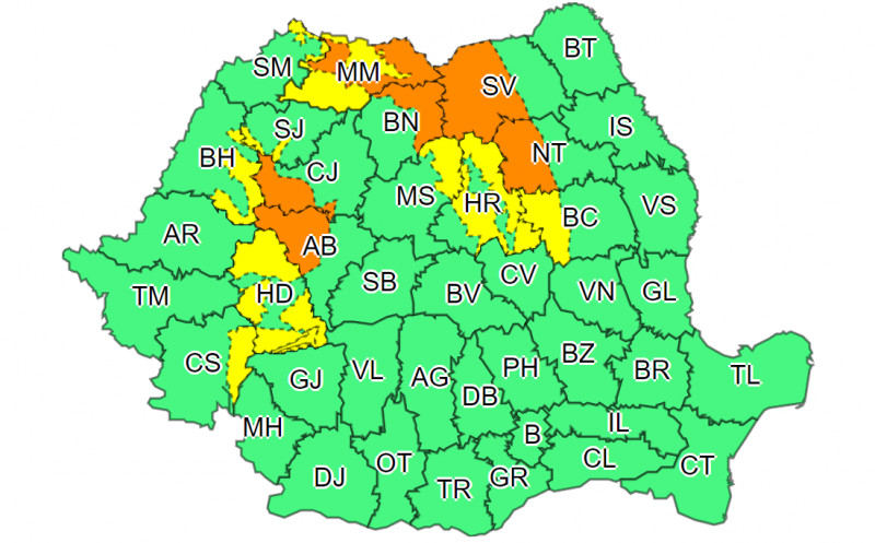 Un alt mesaj cod galben vizează intervalul 07 februarie, ora 18– 08 februarie, ora 20.