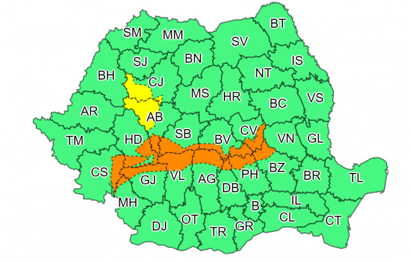 Pentru intervalul 07 februarie, ora 22– 08 februarie, ora 20 a fost emis cod portocaliu. În intervalul menţionat, la altitudini de peste 1600 m în Carpaţii Meridionali şi de Curbură vântul va sufla tare, cu rafale de peste 120...140 km/h, va fi viscol puternic, zăpadă troienită şi vizibilitate foarte scăzută.