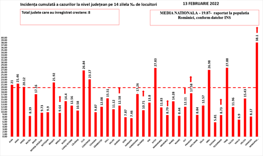 În intervalul 12.02.2022 (10:00) – 13.02.2022 (10:00) au fost raportate de către INSP 81 de decese (47 bărbaţi şi 34 femei), dintre care unul anterior intervalului de referinţă, ale unor pacienţi infectaţi cu noul coronavirus, internaţi în spitalele din Alba, Arad, Argeş, Bacău, Bistriţa-Năsăud, Botoşani, Caraş-Severin, Călăraşi, Cluj, Constanţa, Dâmboviţa, Dolj, Giurgiu, Gorj, Harghita, Iaşi, Mehedinţi, Neamţ, Olt, Prahova, Sălaj, Satu Mare, Sibiu, Suceava, Timiş, Vaslui, Vâlcea şi Municipiul Bucureşti.