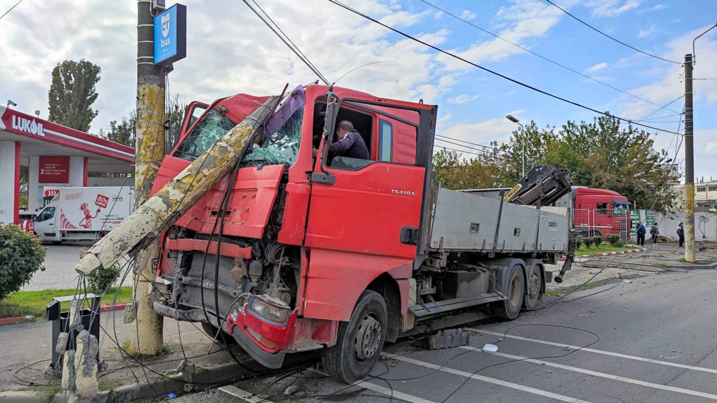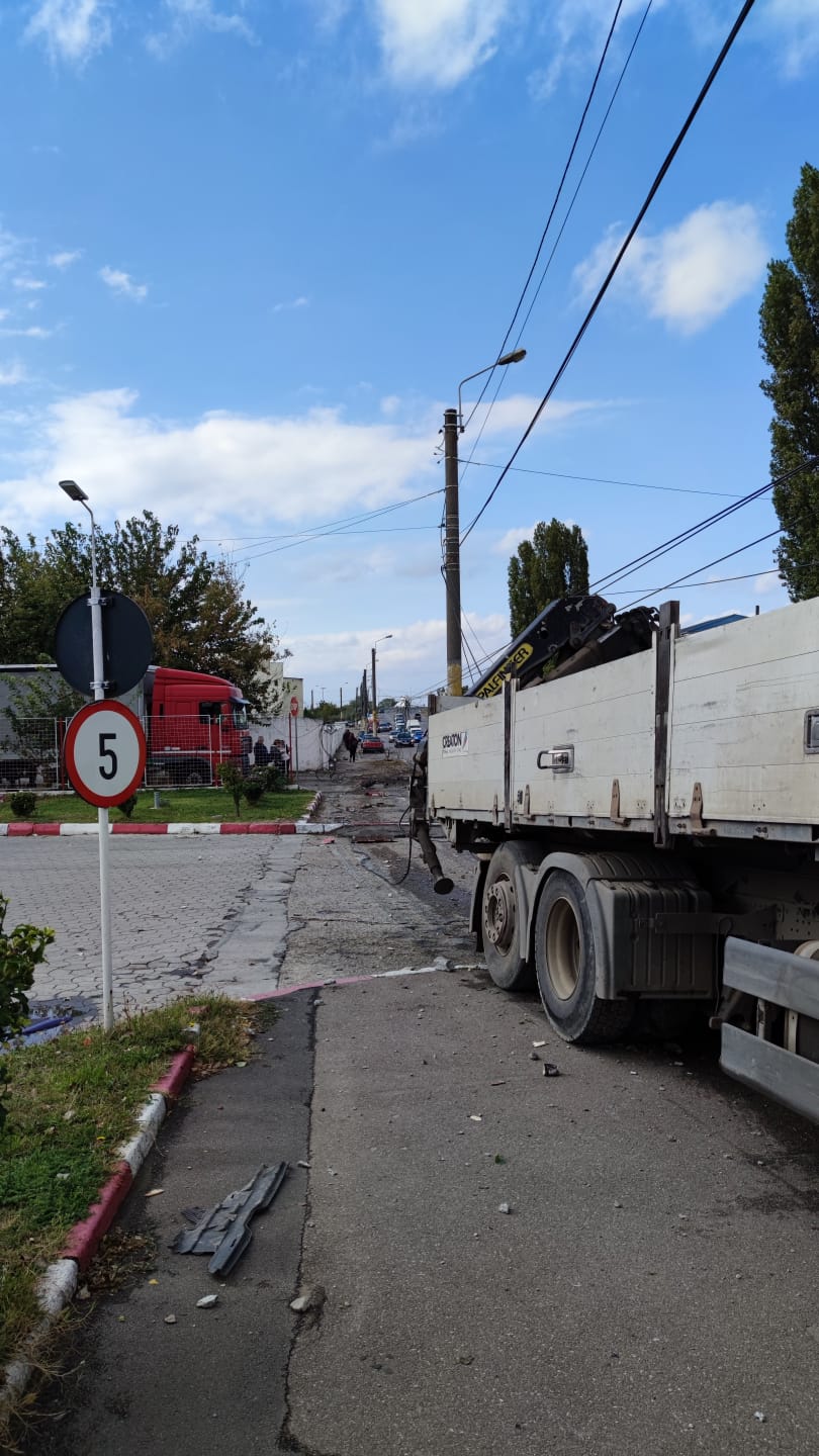 Accident în Constanţa. Un camion a intrat într-un stâlp - FOTO