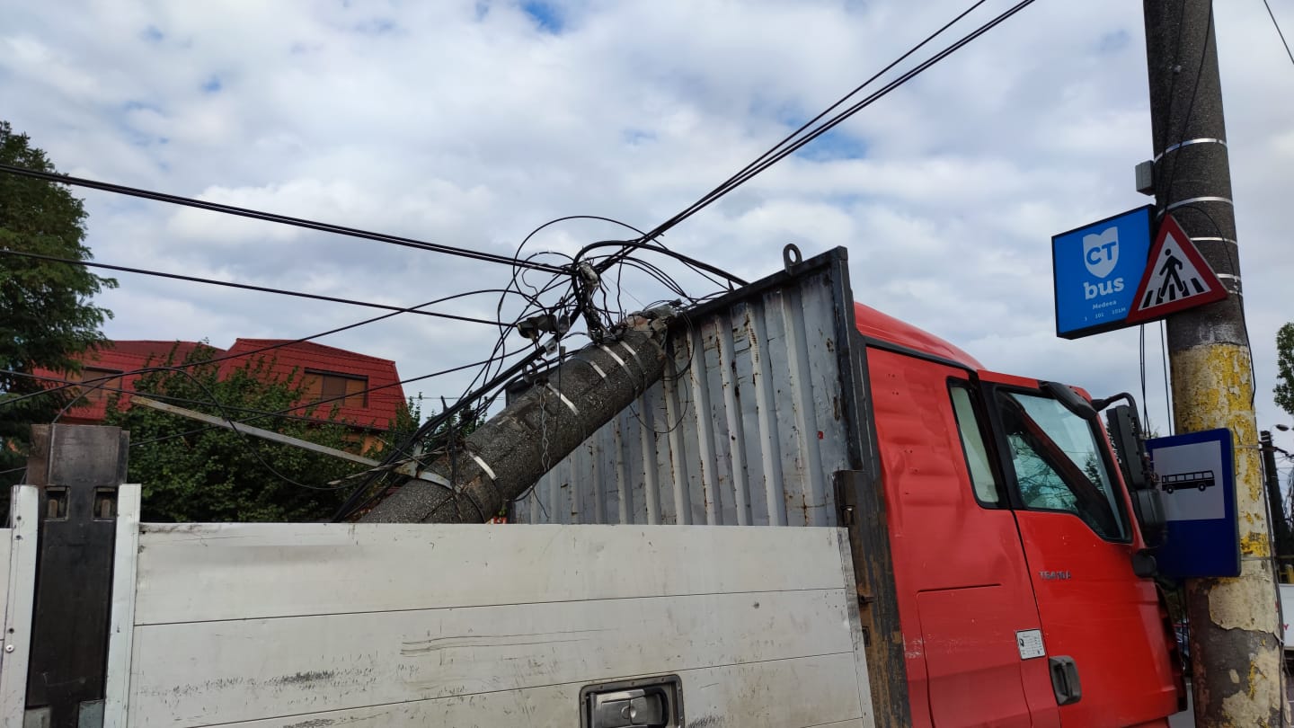 Din primele informaţii, şoferul unui camion a pierdut controlul volanului şi a intrat într-un stâlp de iluminat. Din fericire, nimeni nu a fost rănit.