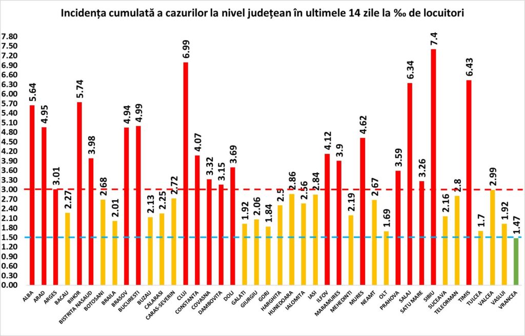 În urma testelor efectuate la nivel național, au fost confirmate 10.142 de cazuri noi de persoane infectate cu SARS-CoV-2, în ultimele 24 de ore. Până astăzi, 12 noiembrie, pe teritoriul României, au fost confirmate 334.236 de cazuri de persoane infectate cu noul coronavirus (COVID – 19). Până în acest moment, 224.916 pacienți au fost declarați vindecați.