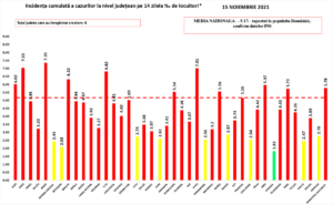 În intervalul 14.11.2021 (10:00) – 15.11.2021 (10:00) au fost raportate de către INSP 195 de decese (92 bărbați și 103 femei), din care 16 anterioare intervalului de referință, ale unor pacienți infectați cu noul coronavirus, internați în spitalele din Alba, Arad, Bacău, Bihor, Bistrița-Năsăud, Botoșani, Brașov, Călărași, Caraș-Severin, Cluj, Constanța, Dolj, Galați, Giurgiu, Gorj, Harghita, Ialomița, Iași, Ilfov, Mehedinți, Mureș, Neamț, Olt, Prahova, Sălaj, Satu Mare, Sibiu, Timiș, Vaslui, Vrancea și Municipiul București.