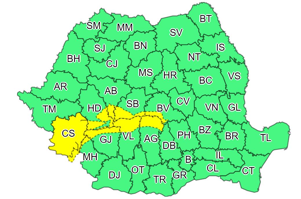 „Vântul va prezenta intensificări în sudul Banatului, cu viteze în general de 60...80 km/h. Local, în Carpaţii Meridionali, în special la altitudini de peste 1800 m, rafalele vor depăşi 90...100 km/h, temporar viscolind ninsoarea”, transmite ANM.