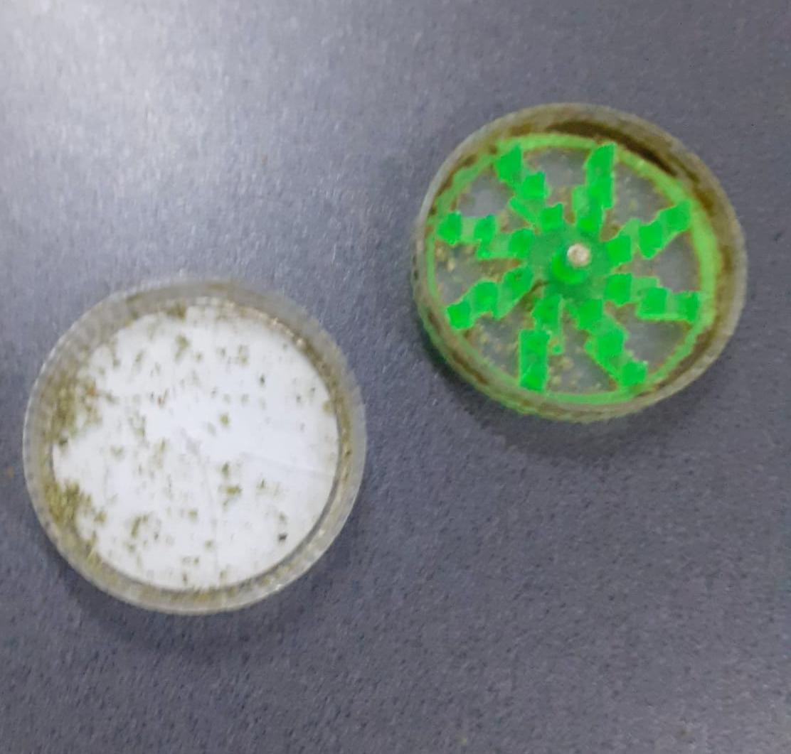 În urma verificărilor, au fost găsite două bile ce conțineau materie vegetală uscată de culoare verde, susceptibilă a avea efect psihoactiv/psihotrop, un grinder pentru mărunțirea acestei materii vegetale, filtre și hârtie pentru fabricarea țigărilor.